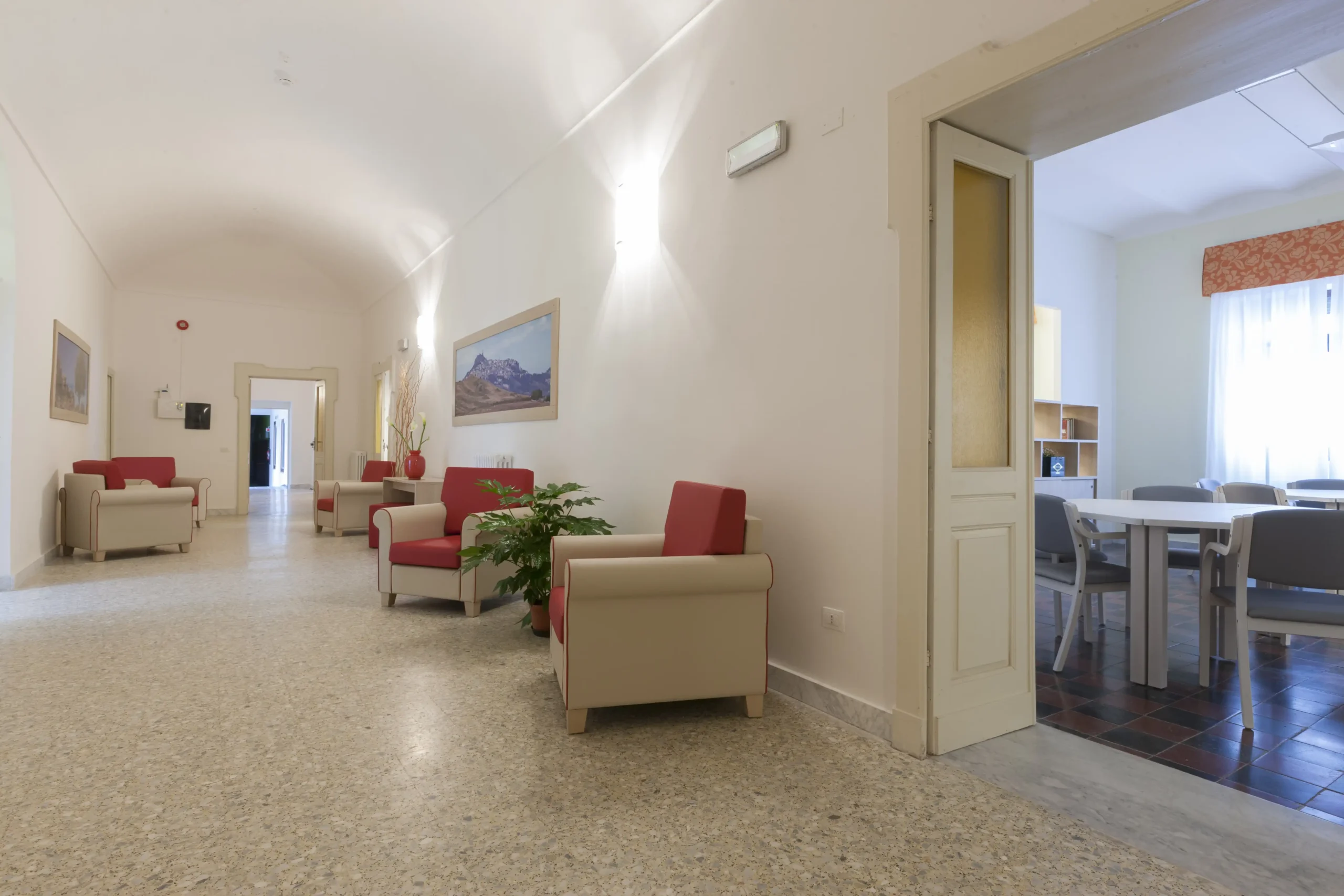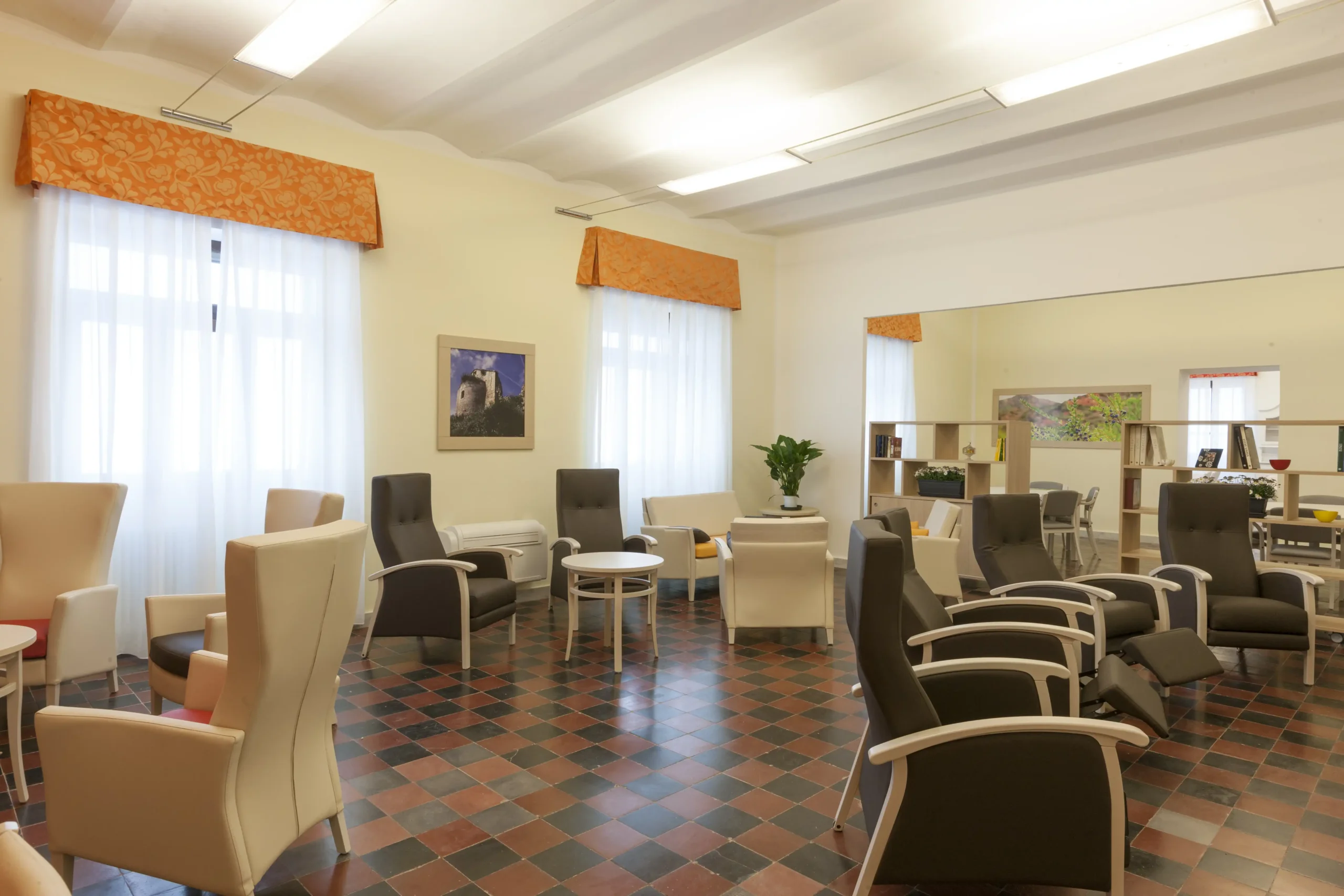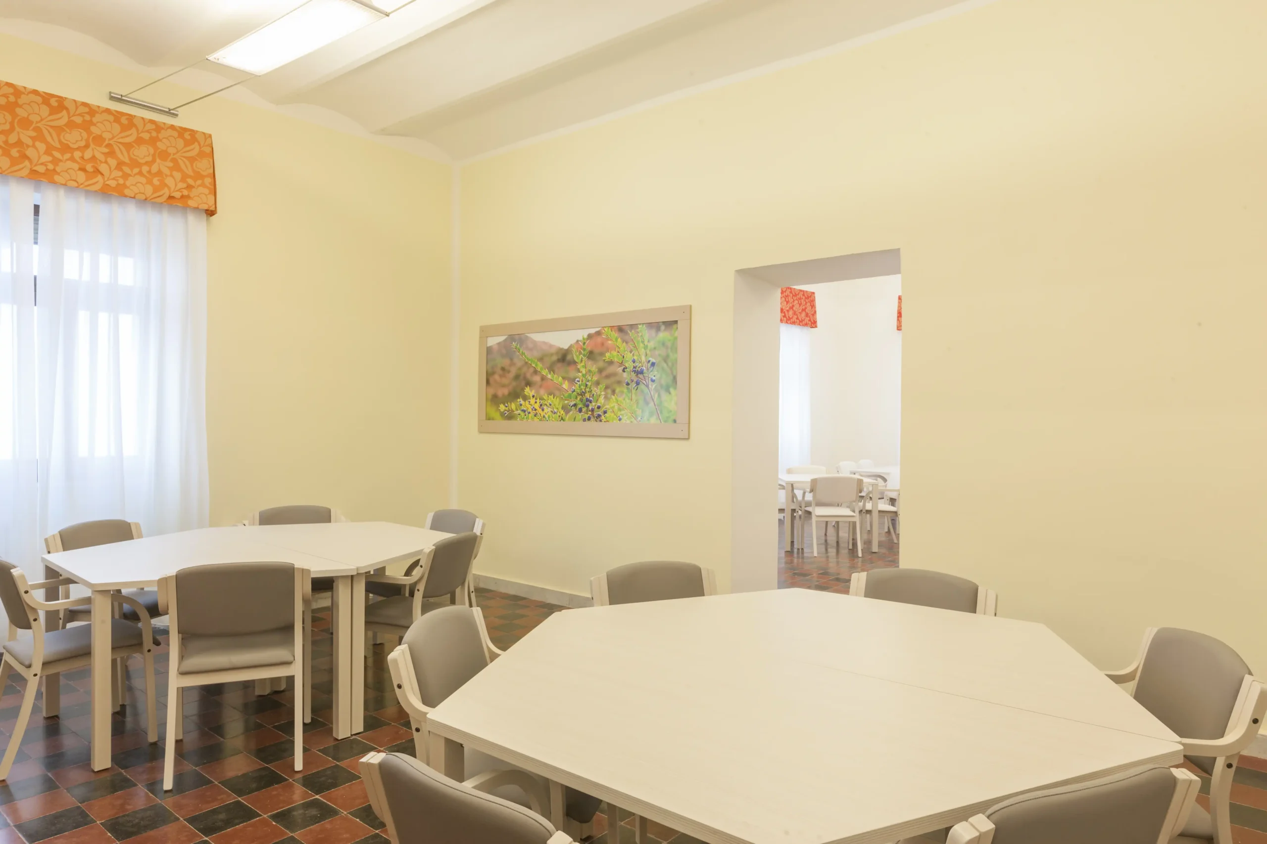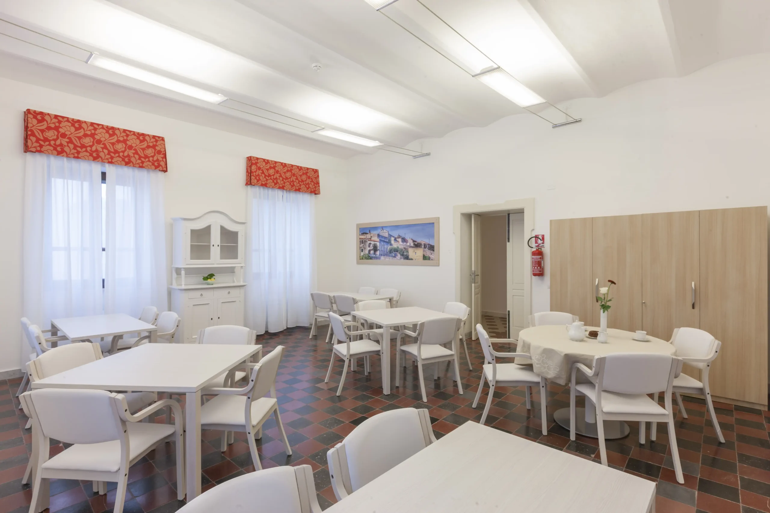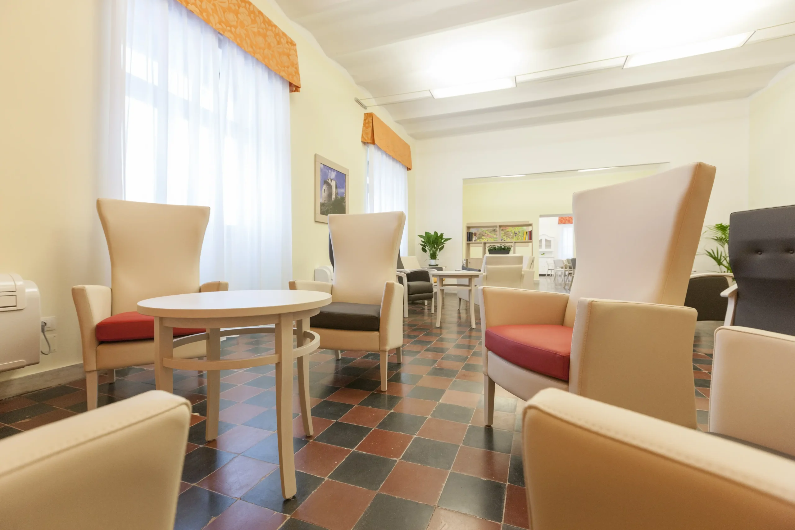 I residenti possono godere di spazi comuni confortevoli, giardino esterno e attività ricreative quotidiane. Il servizio include assistenza sanitaria, ristorazione con cucina interna e supporto nelle attività quotidiane.