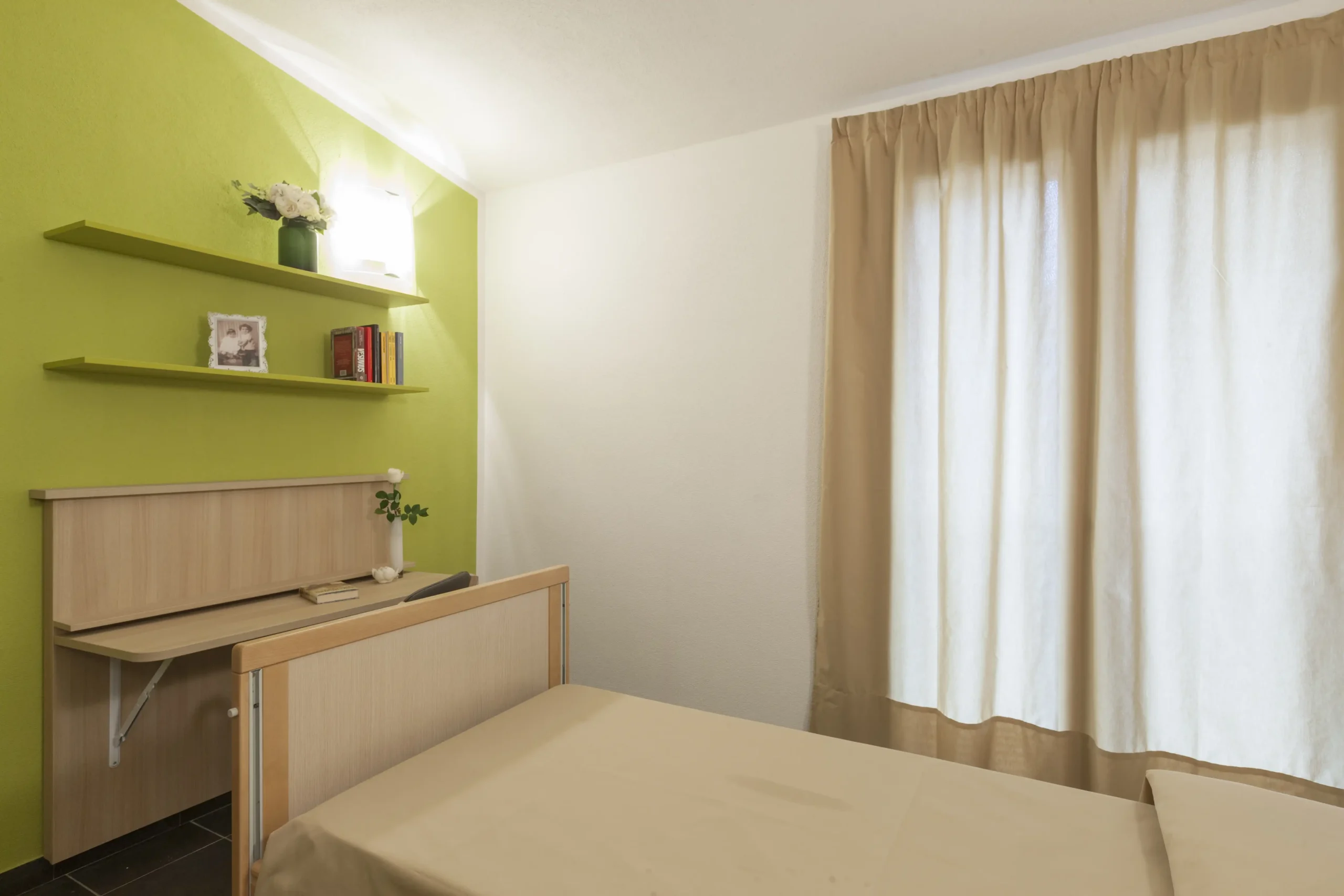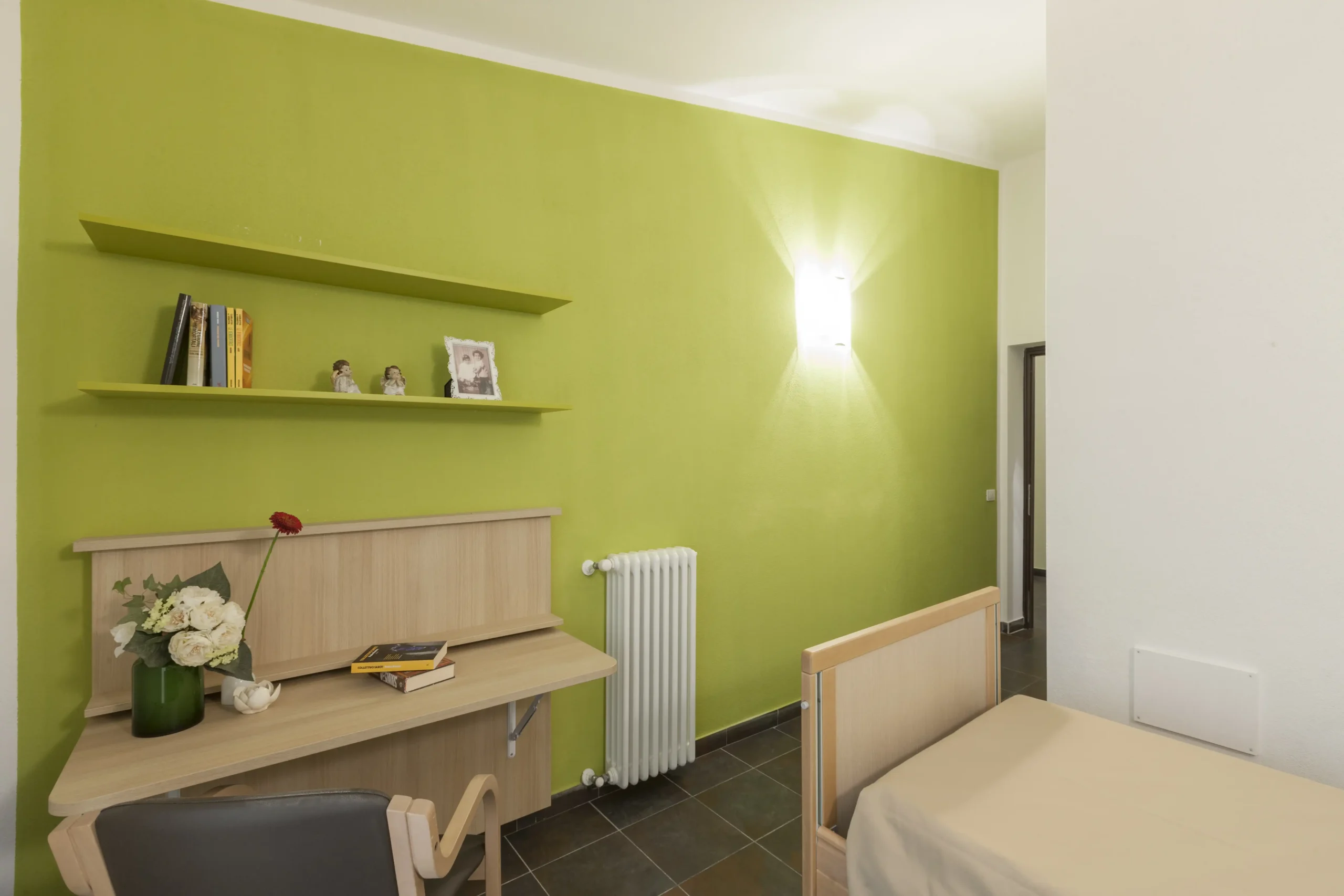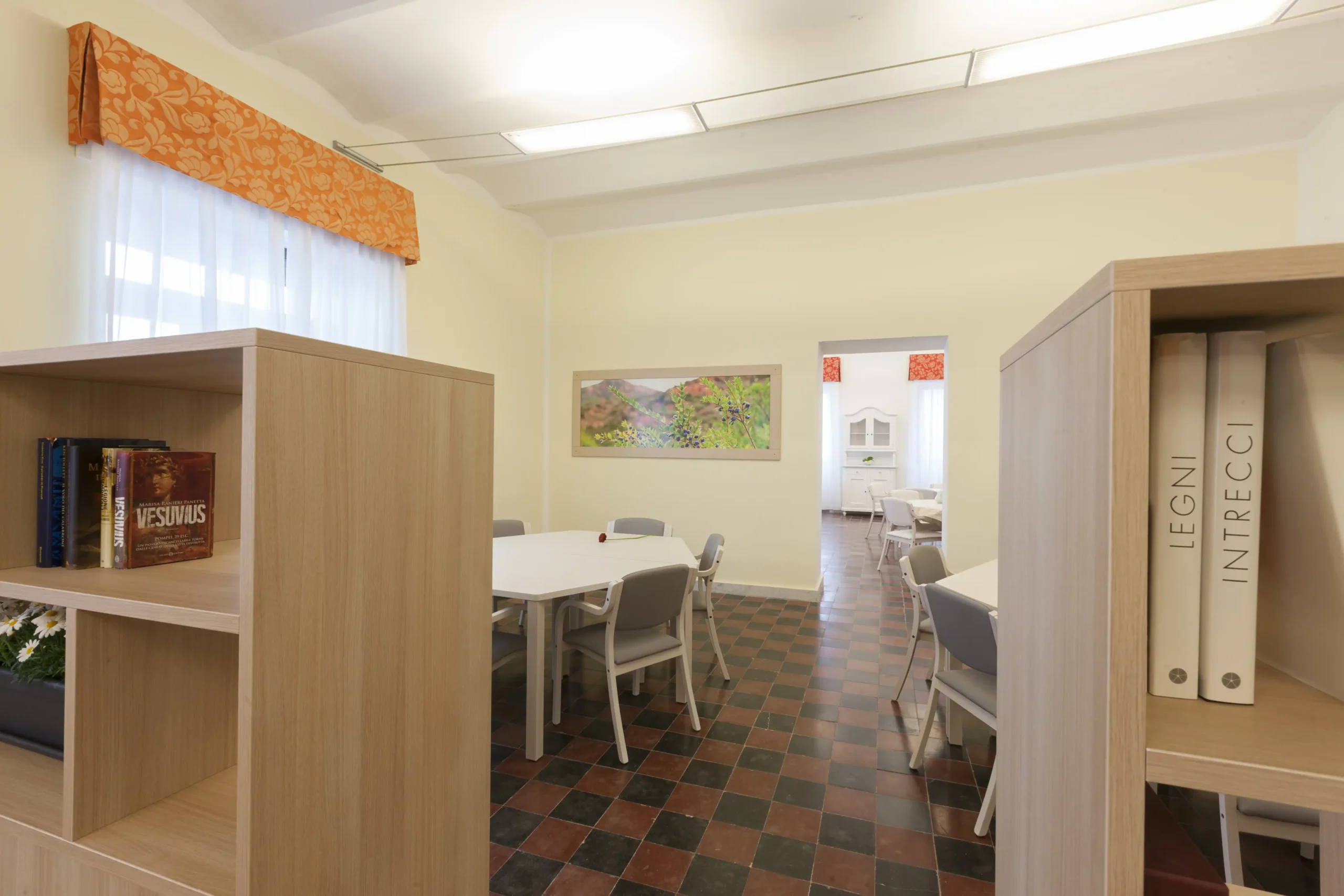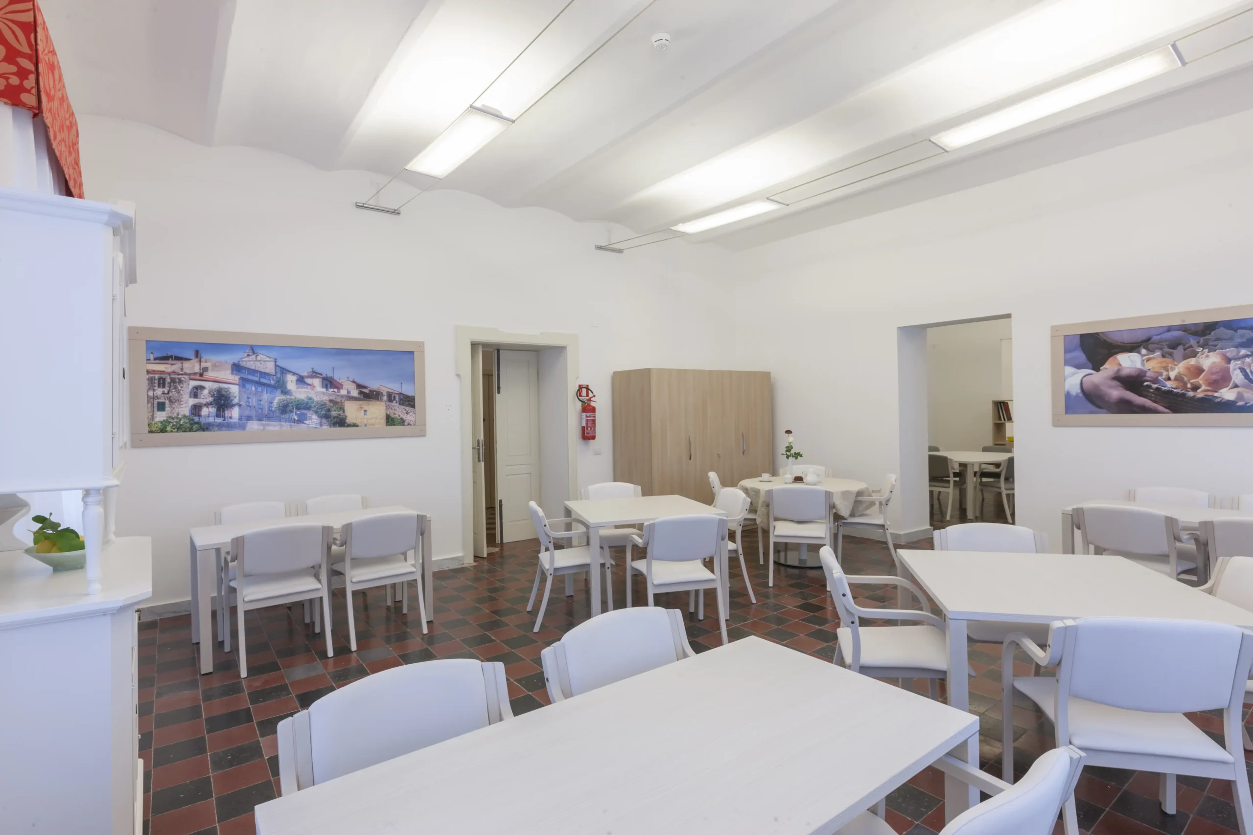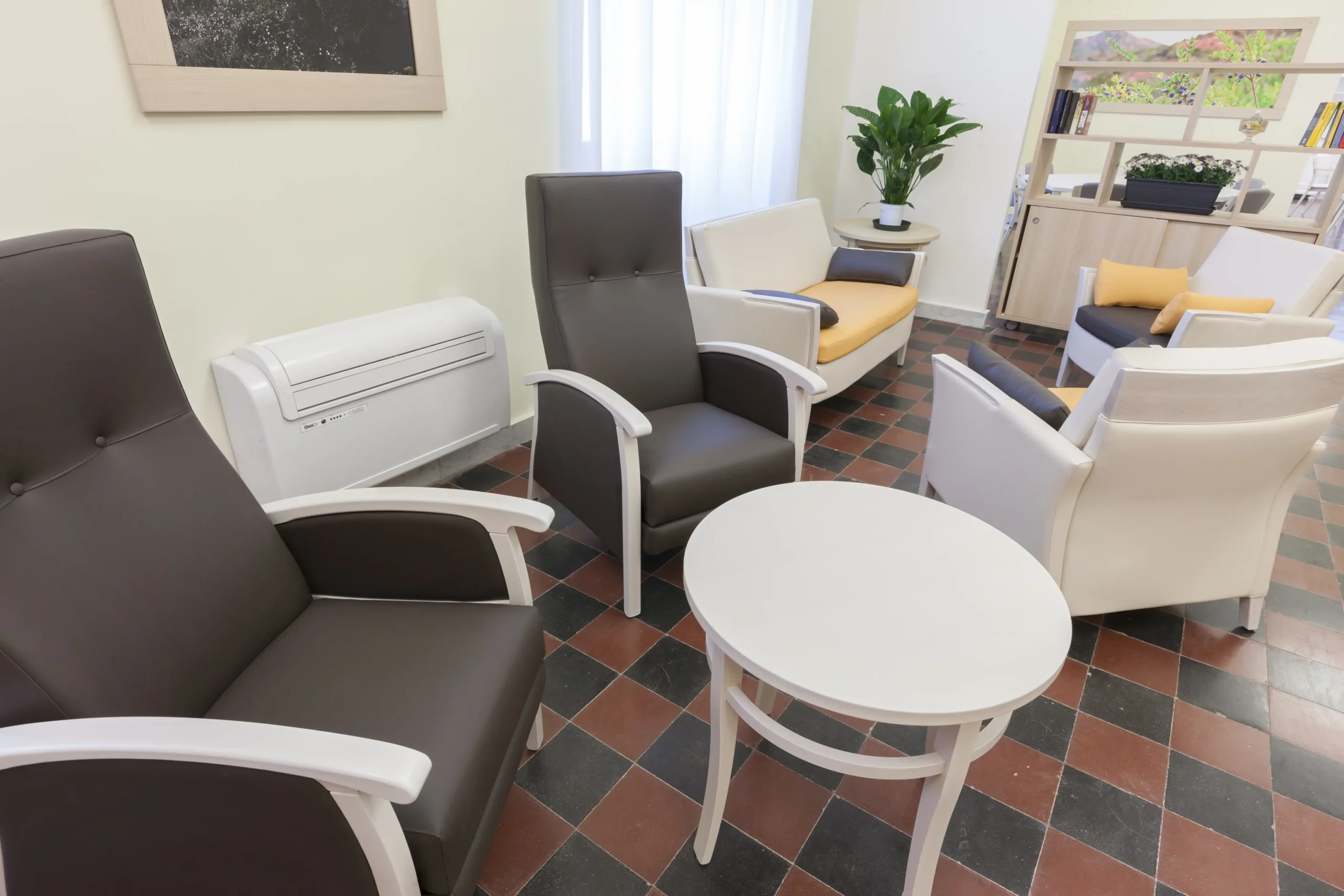 I residenti possono godere di spazi comuni confortevoli, giardino esterno e attività ricreative quotidiane. Il servizio include assistenza sanitaria, ristorazione con cucina interna e supporto nelle attività quotidiane.